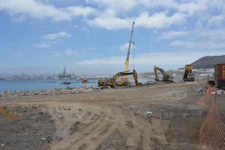 Le port de Las Palmas est en travaux, l’accès pour les bateaux de la compagnie Armas est tout au bout de la nouvelle plateforme, avec la nouvelle jetée Nelson Mandela.