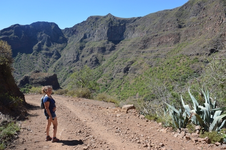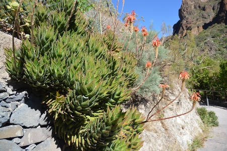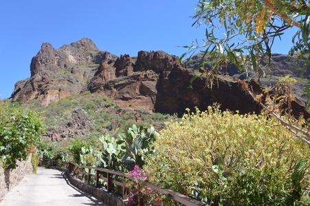 Barranco de Guayadeque : Nous voilà en route dans les gorges les plus spectaculaires de Grande Canarie, qui abritent une faune et une flore très riche. On y croise de nombreux amandiers. La route, qui circule au fond de la gorge, est un cul de sac.