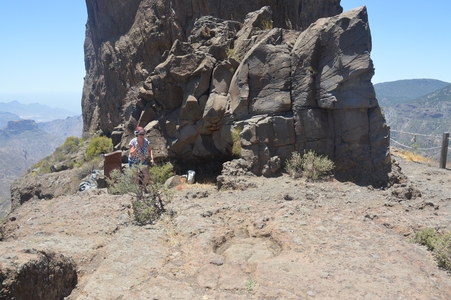 Cruz de Tejeda: Au centre géographique de l’île, au col d’une altitude à 1580m et au cœur des montagnes de Grande Canarie, Cruz de Tejeda se dit le point de rendez-vous pour les randonnées. Tout autour, nous admirons les spectaculaires dents rocheuses de Roque Nublo et Roque Bentayga, entre autres. Paysages à couper le souffle, endroit idéal pour se relaxer. Nous passons au moins 30mn avec un jeune de l’office de tourisme. Echange fort intéressant et enrichissant en français.