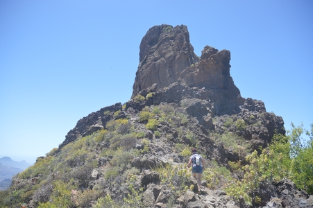 Il se présente sous la forme d’un monolithe de basalte haut de 80 mètres et culminant à 1 813 mètres d’altitude. (apparu suite à l’activité volcanique de la période du Pléistocène .. il y a bien longtemps !!!) Nous stoppons au parking le plus proche de Roque Nublo. Allez… on y va ! Le sentier est vraiment sympa, varié et nous offre de magnifiques paysages sur cette zone classée Réserve Mondiale de la Biosphère, avec une végétation luxuriante et des sommets déchiquetés.
