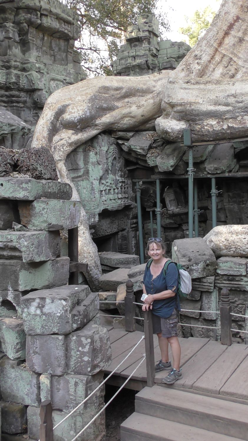 Quel étonnant édifice : Le célèbre temple « plat » de Ta Phrom (1178/1220) est envahi par une jungle de racines gigantesques de figuiers, banians et fromagers.