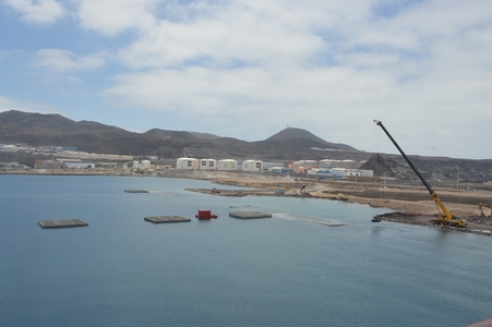 Le port de Las Palmas est en travaux, l’accès pour les bateaux de la compagnie Armas est tout au bout de la nouvelle plateforme, avec la nouvelle jetée Nelson Mandela.