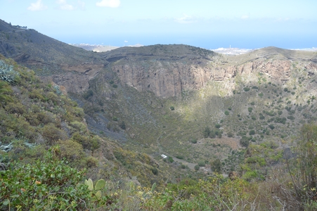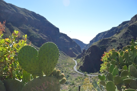 Barranco de Guayadeque : Nous voilà en route dans les gorges les plus spectaculaires de Grande Canarie, qui abritent une faune et une flore très riche. On y croise de nombreux amandiers. La route, qui circule au fond de la gorge, est un cul de sac.
