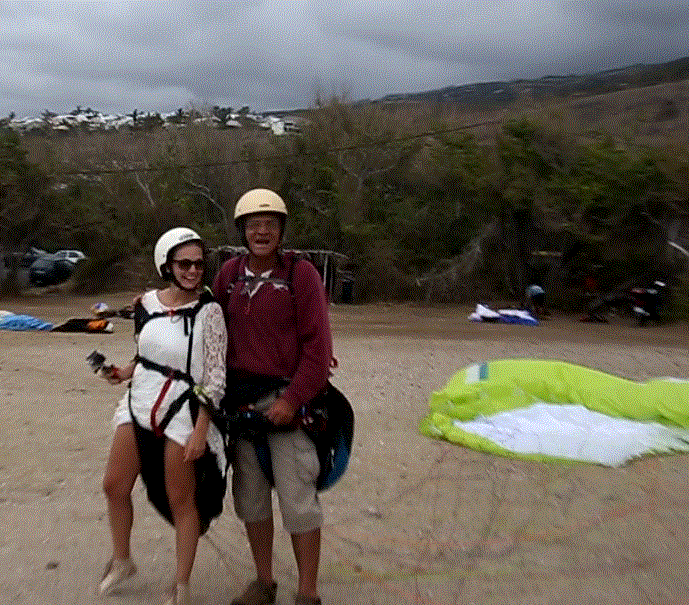 Angéline et David, en tenue de mariés, et oui, se préparent pour un vol libre au dessus de St Leu et ses alentours.