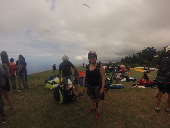 C’est mon baptême de parapente, et celui de bien d’autres cet après-midi (Aline, Angéline, Elise, Nelly et David).