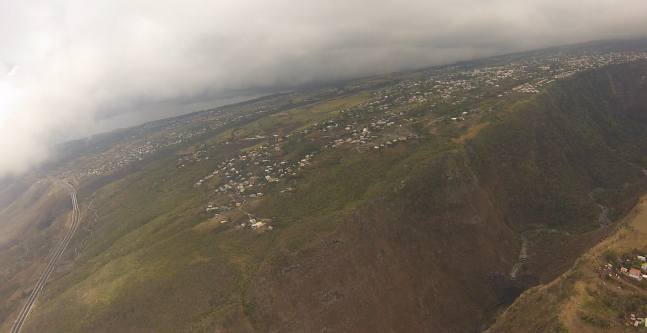 Une vue à couper le souffle. Merci à Guillaume qui m’a fait « planer » au dessus de la ravine et ses pailles en queue, du lagon, et avec de riches commentaires.