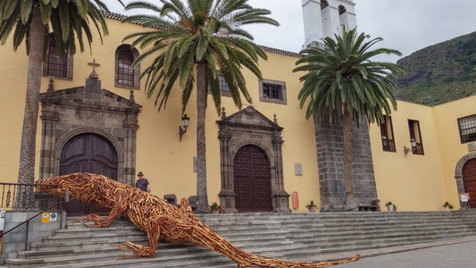 Garachico lezard boisCette sculpture sur les marches du couvent de la Villa de Garachico est une oeuvre  de l’artiste Italien Luigi Stinga qui utilise des palettes en bois de recyclage pour mener à bien ce travail. Un minotaure existe aussi à Puerto de la Cruz. (voir plus bas).